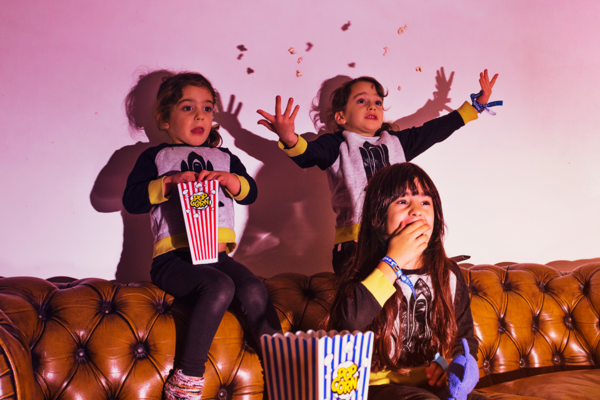 Transforma a sala de estar num verdadeiro cinema! Escolham um tema para a noite, como "super-heróis", "animais" ou "clássicos da Disney", preparem pipocas e aconcheguem-se no sofá para uma maratona de filmes. Podem até fazer bilhetes de cinema e criar um ambiente mais autêntico. Uma maneira perfeita de relaxar e divertirem-se em família.